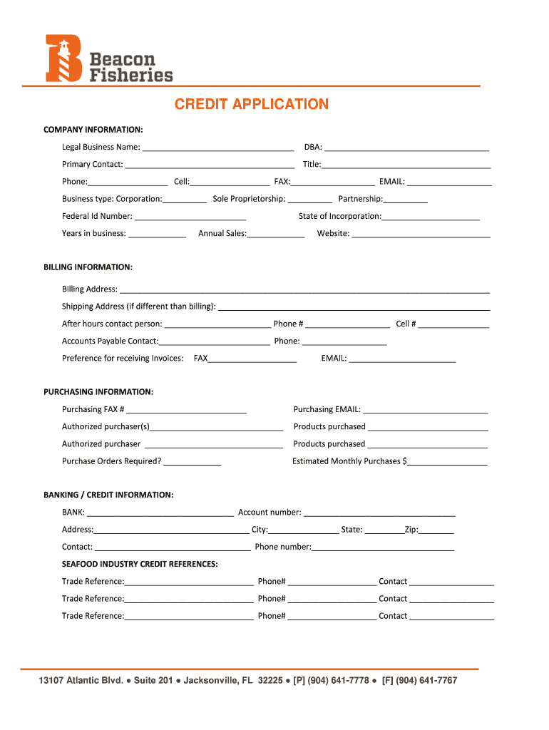 CREDIT APPLICATION COMPANY INFORMATION: Legal Business Name: DBA: Primary Contact: Title: Phone: Cell: FAX: EMAIL: Business type: Corporation: Sole Proprietorship: Partnership: Federal I'd Number:
