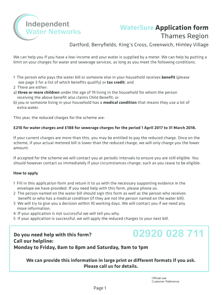 How to fill out watersure application form thames