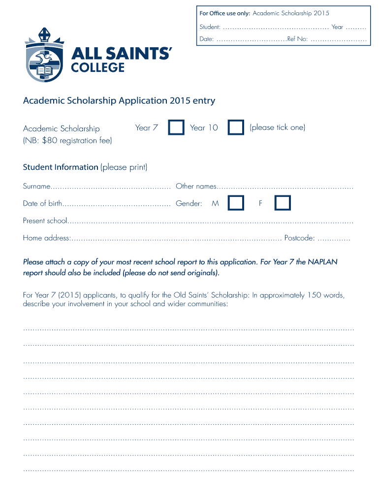 Get the free Academic Scholarship Application 2015 entry - All Saints' College