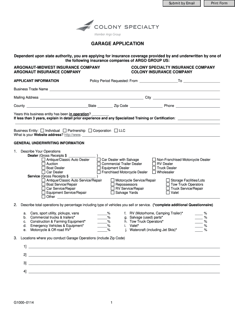 Get the free Garage Insurance Application Form