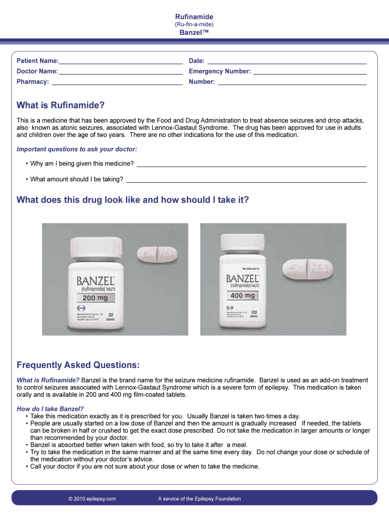 Get the free Rufinamide Patient Information Form