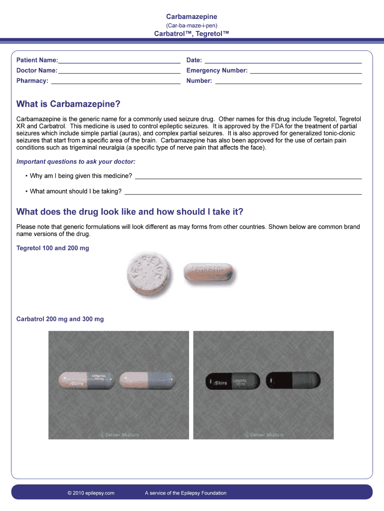 Get the free Carbamazepine Medication Guide