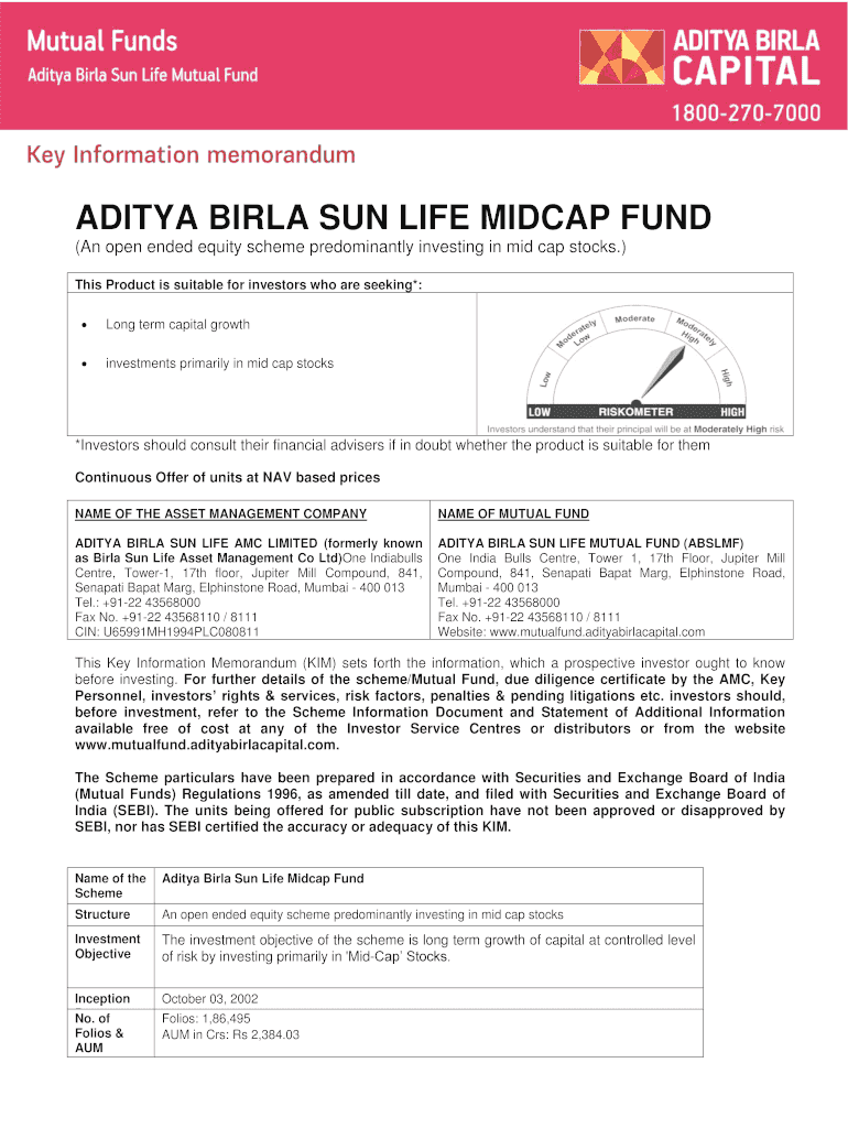 ADITYA BIR LA SUN LIFE MIDCAP FUND