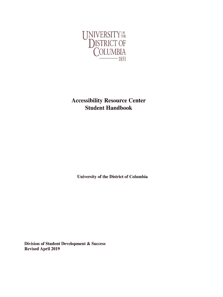 Accessibility Resource Center Student HandbookUniversity of the District of ColumbiaDivision of Student Development & Success Revised April 2019TABLE OF CONTENTSUNIVERSITY OF THE DISTRICT OF COLUMBIA