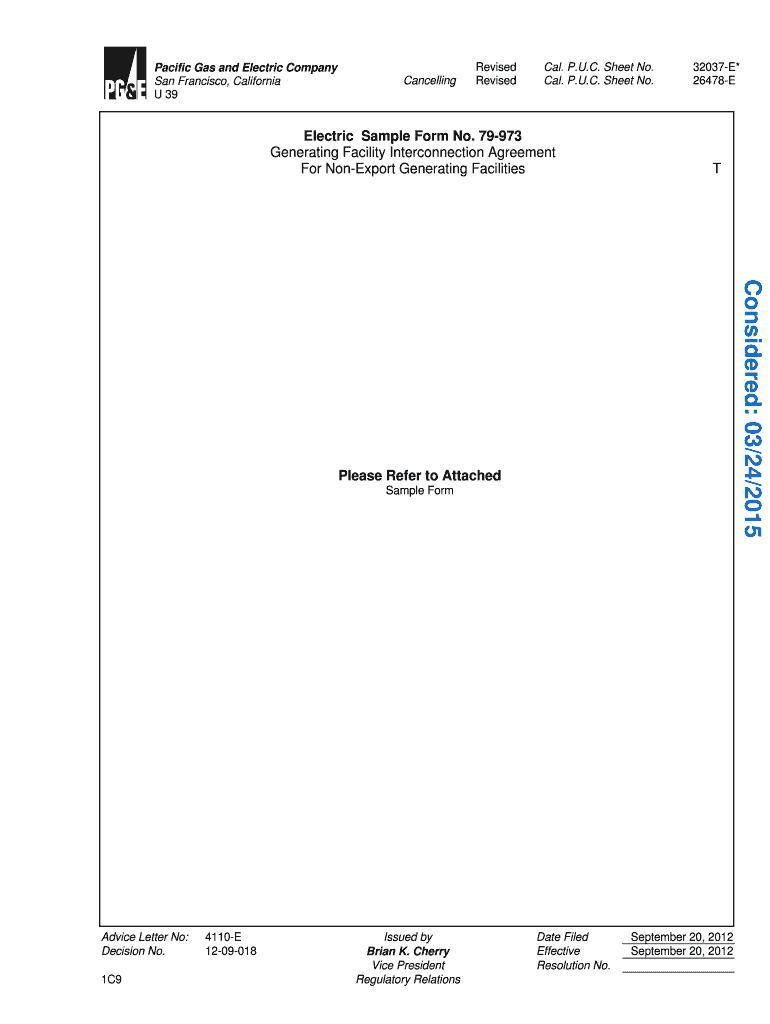 Cal. P.U.C. Sheet No. Electric Sample Form No. 79973