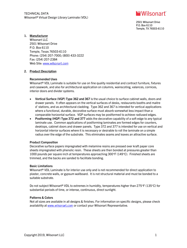 Email, fax, or share your technical data wilsonart re-cover form via URL. You can also download, print, or export forms to your preferred cloud storage service.