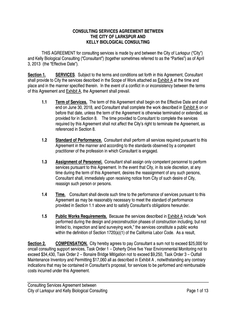 THIS AGREEMENT for consulting services is made by and between the City of Larkspur (City)