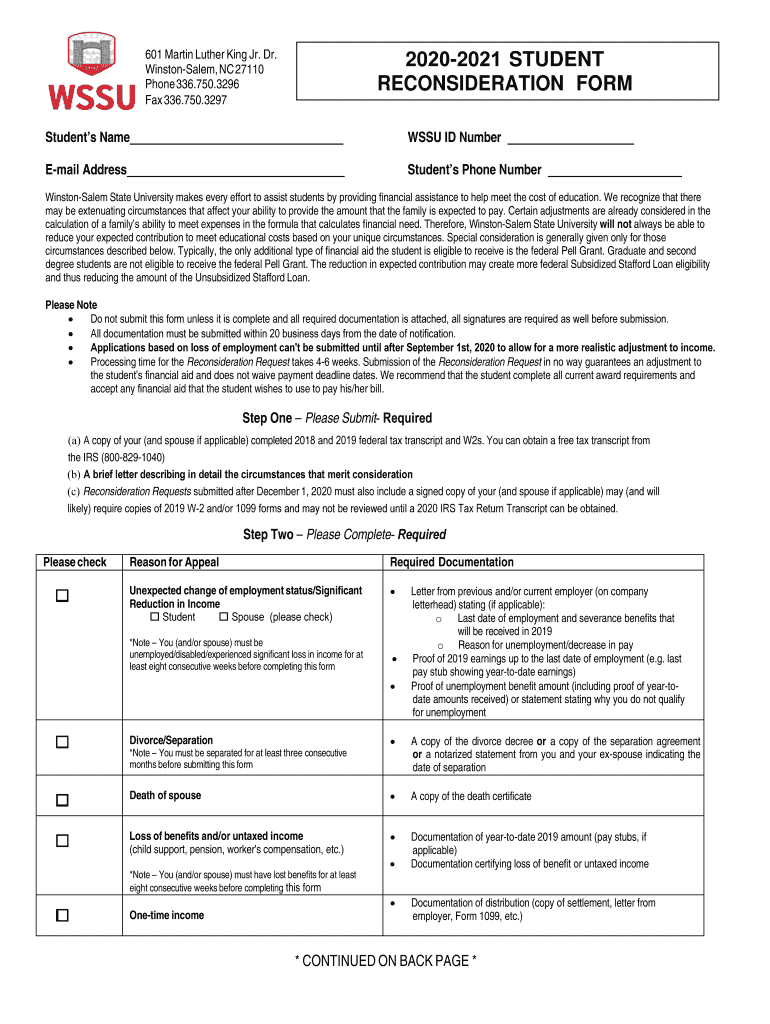 RECONSIDERATION FORMStudents Names ID NumberEmail AddressStudents Phone NumberWinstonSalem State