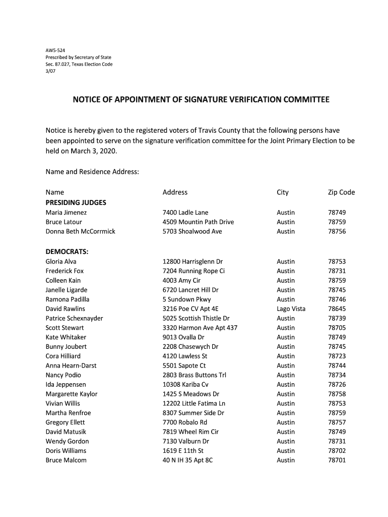 Get the free Notice is hereby given to the registered voters of Travis County that the following ...