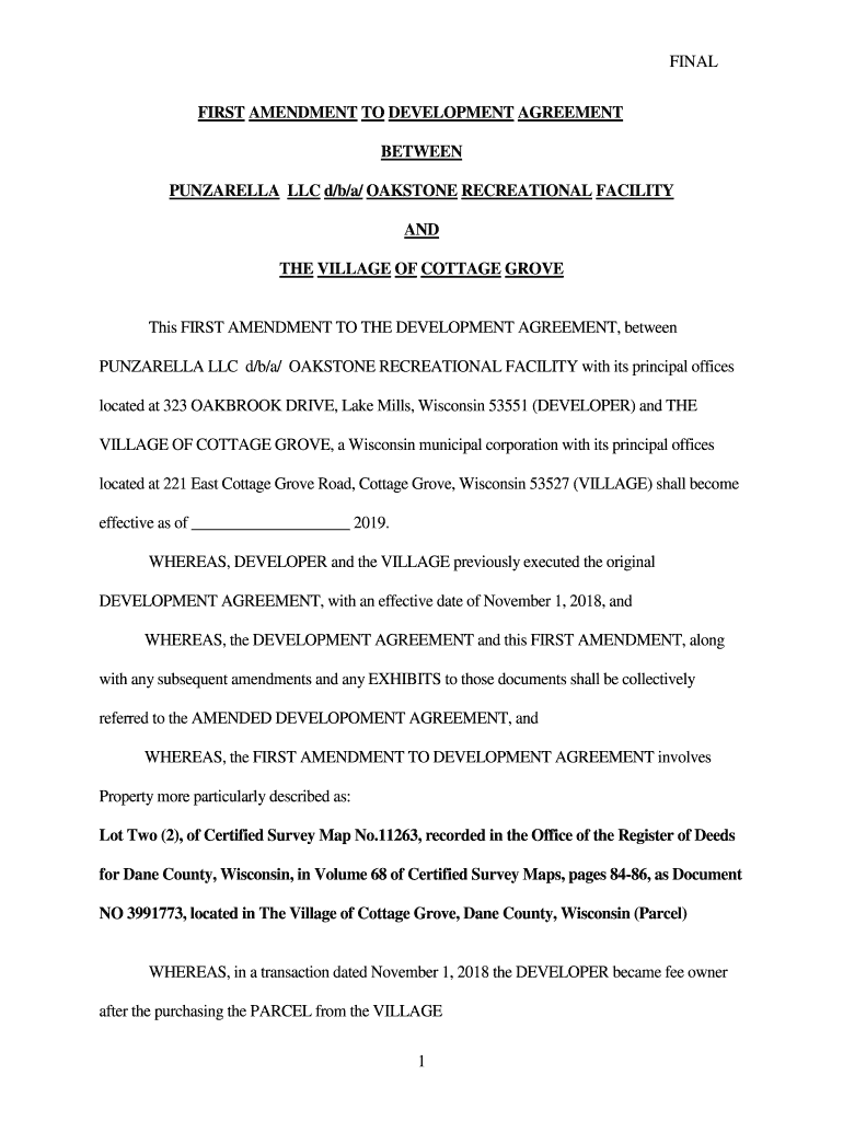 Get the free FINAL 1 FIRST AMENDMENT TO DEVELOPMENT AGREEMENT ...
