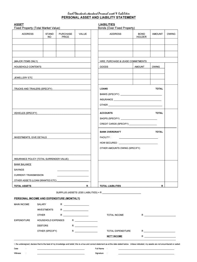 Get the free Personal Asset and Liability Statement