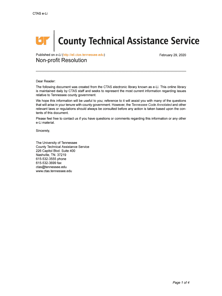 CTAs published on ELI (http://eli.ctas.tennessee.edu)February 29, 2020Nonprofit Revolutionary Reader: