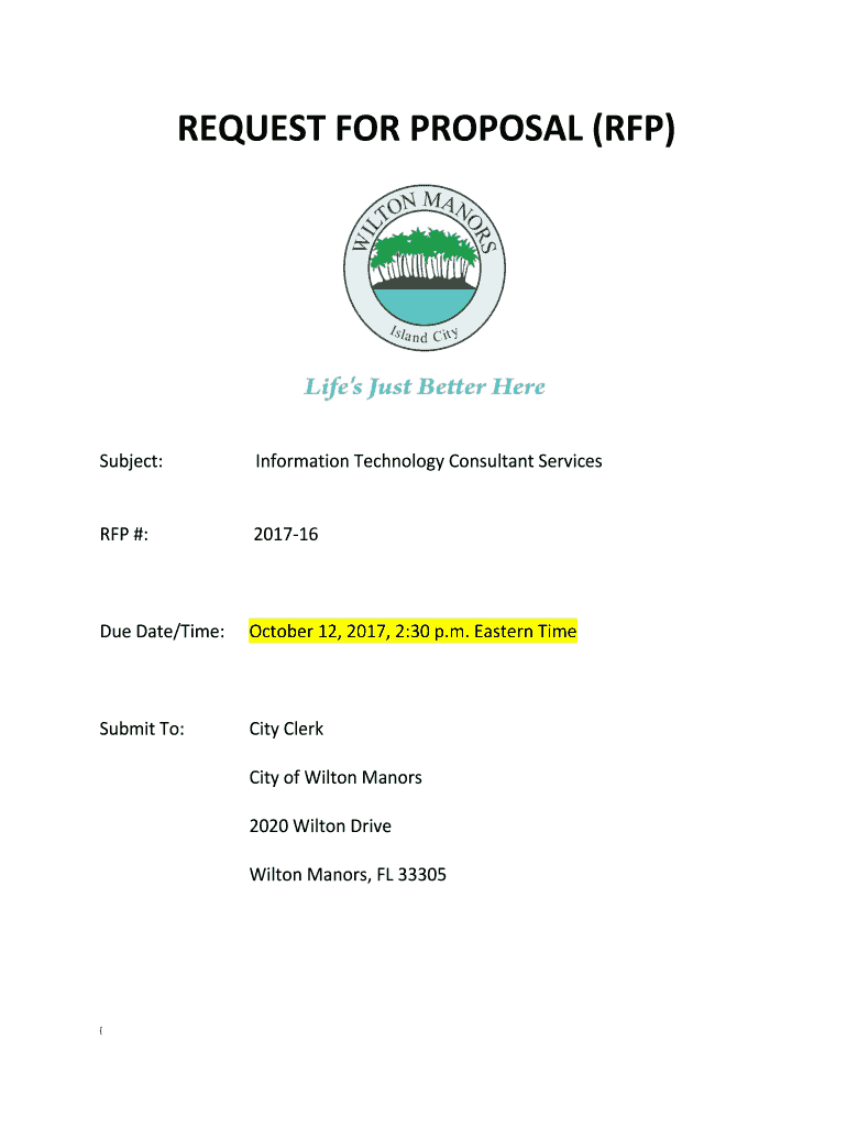 REQUEST FOR PROPOSAL (RFP)Subject:Information Technology Consultant Services RFP #:201716Due Date/Time:October 12, 2017, 2:30 p.m. Eastern Resubmit To:City Clerk