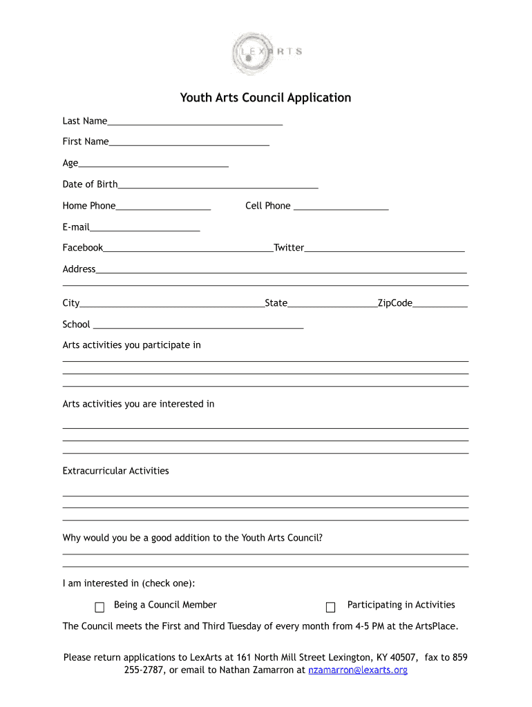 Get the free Youth Arts Council Application - lexarts.org