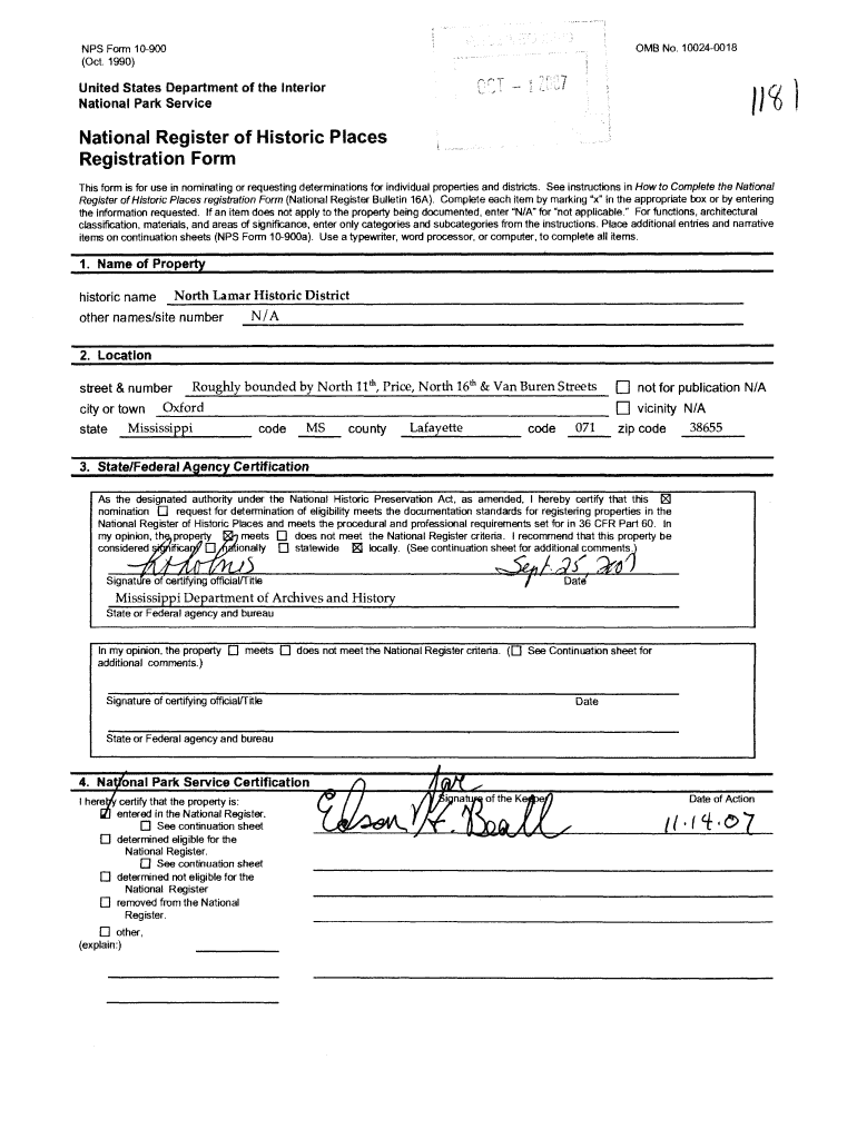 OMB No. 100240018NPS Form 10900 (Oct. 1990)United States Department of the Interior National Park Service J 1 ti National Register of Historic Places Registration Form This form is for use in nominating