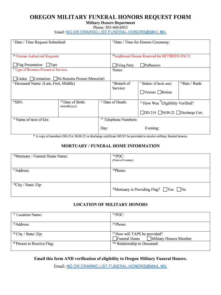 OREGON MILITARY FUNERAL HONORS REQUEST FORM