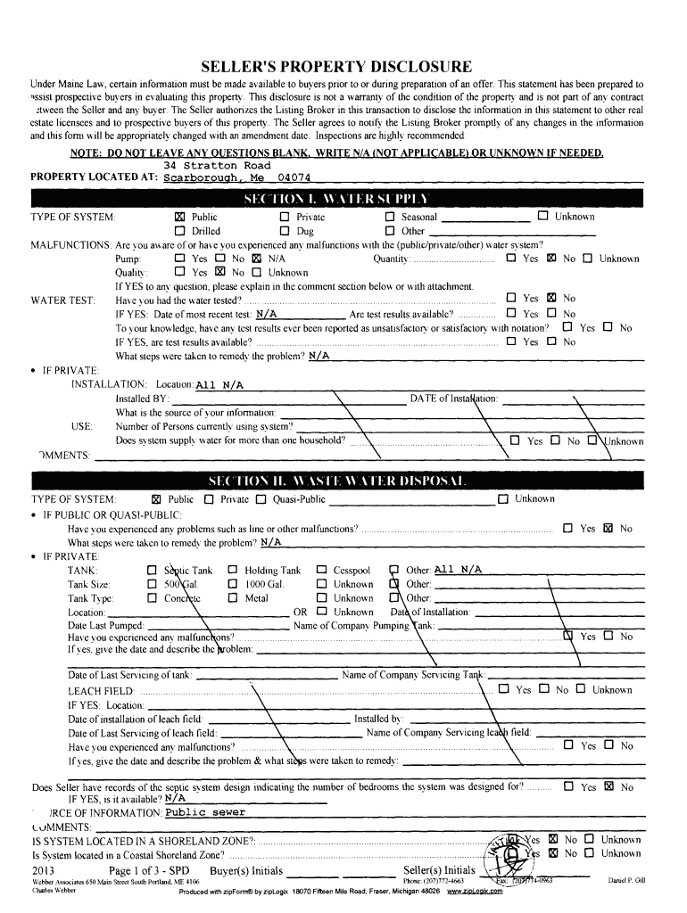 Get the free Maine Seller Property Disclosure Form