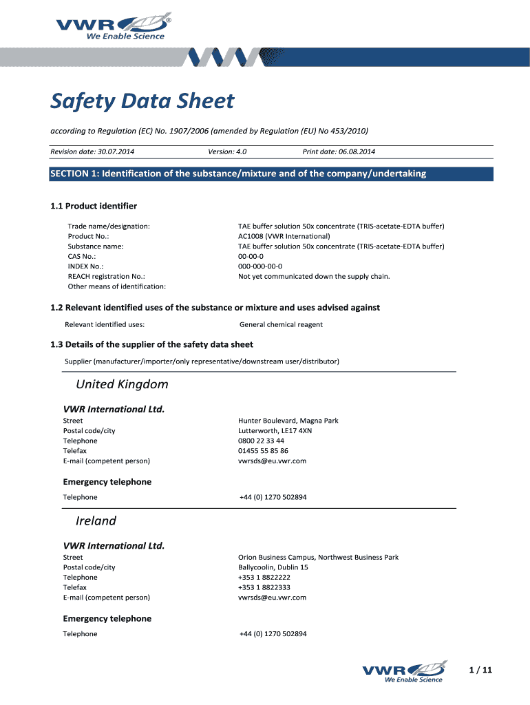 Revision date: 30.07.2014Version: 4.0Print date: 06.08.2014SECTION 1: Identification of the substance/mixture