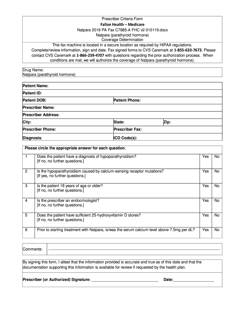 Get the free Natpara (parathyroid hormone analog) - Prior Authorization ...