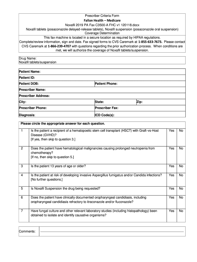 Prescriber Criteria Formally Health Medicare 2019 PA Fax C3500A FHC v1 120118.docx tablets (posaconazole delayed release tablets), suspension (posaconazole oral suspension) Coverage Determination