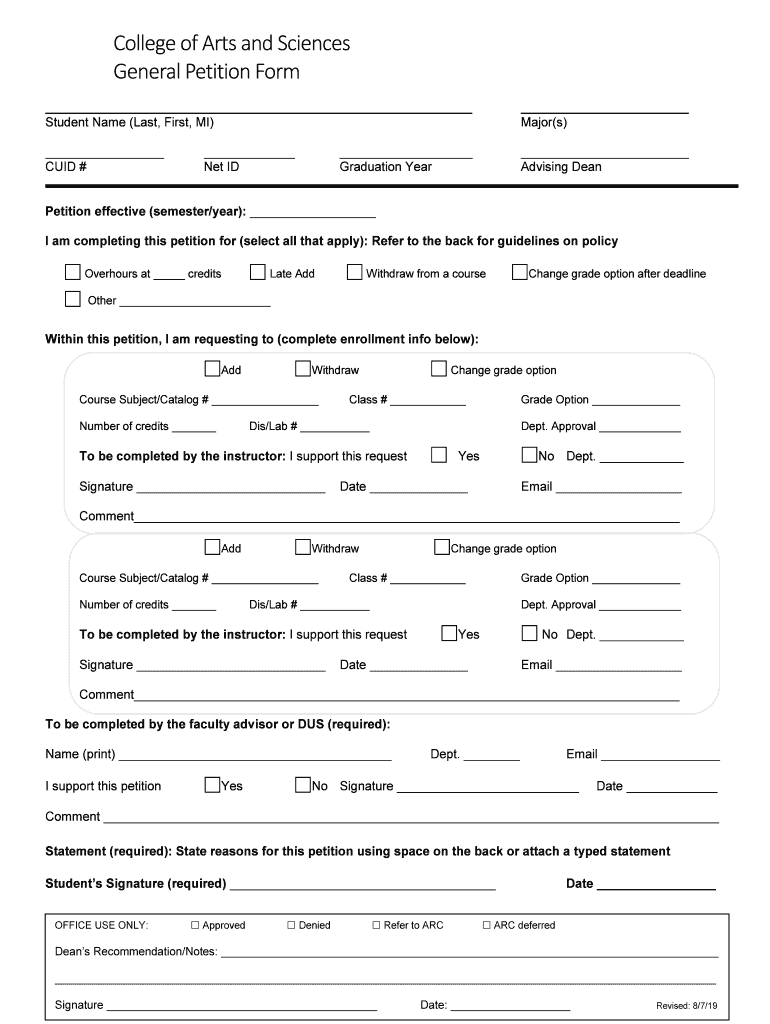 Get the free College of Arts & Sciences General Petition Form - as cornell