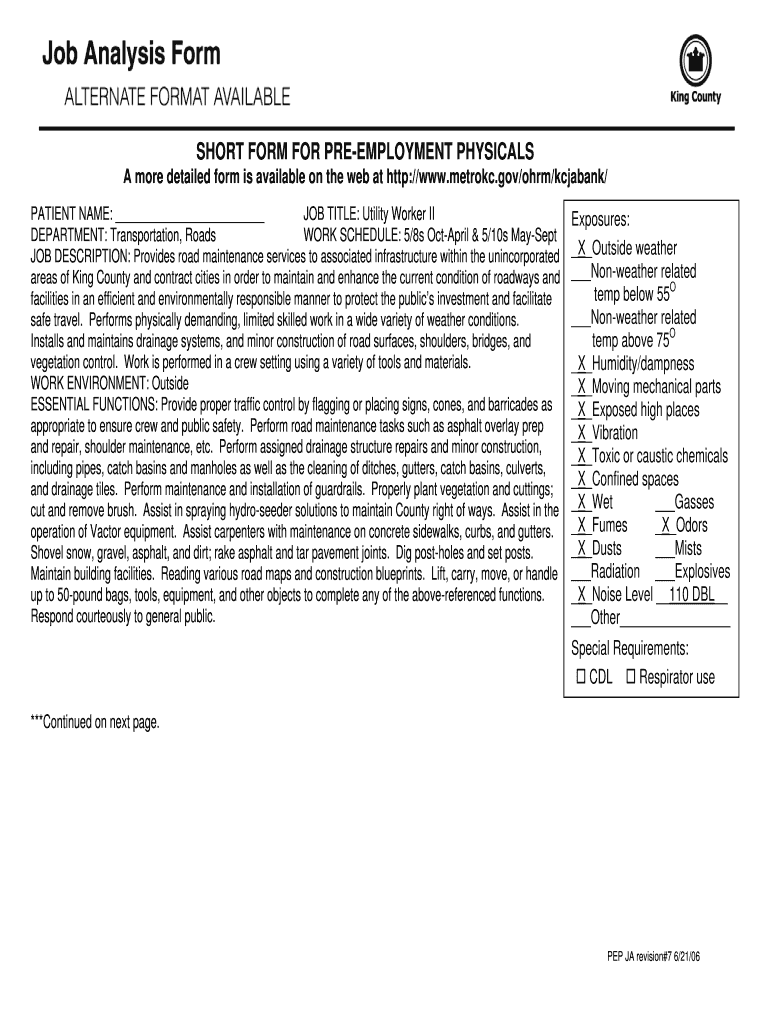 Get the free SHORT FORM FOR PRE-EMPLOYMENT PHYSICALS A more detailed ...
