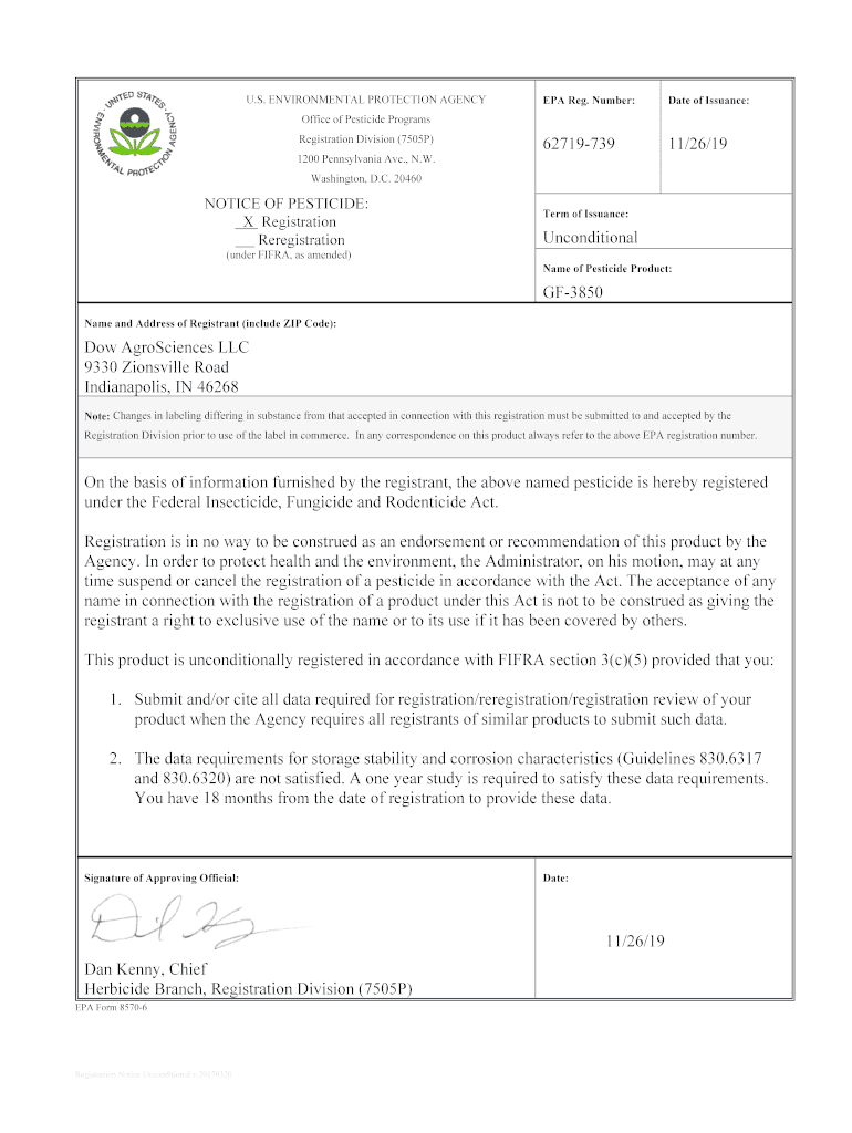 U.S. ENVIRONMENTAL PROTECTION AGENCY EPA Reg. Number:Date of Issuance:6271973911/26/19Office of Pesticide Programs