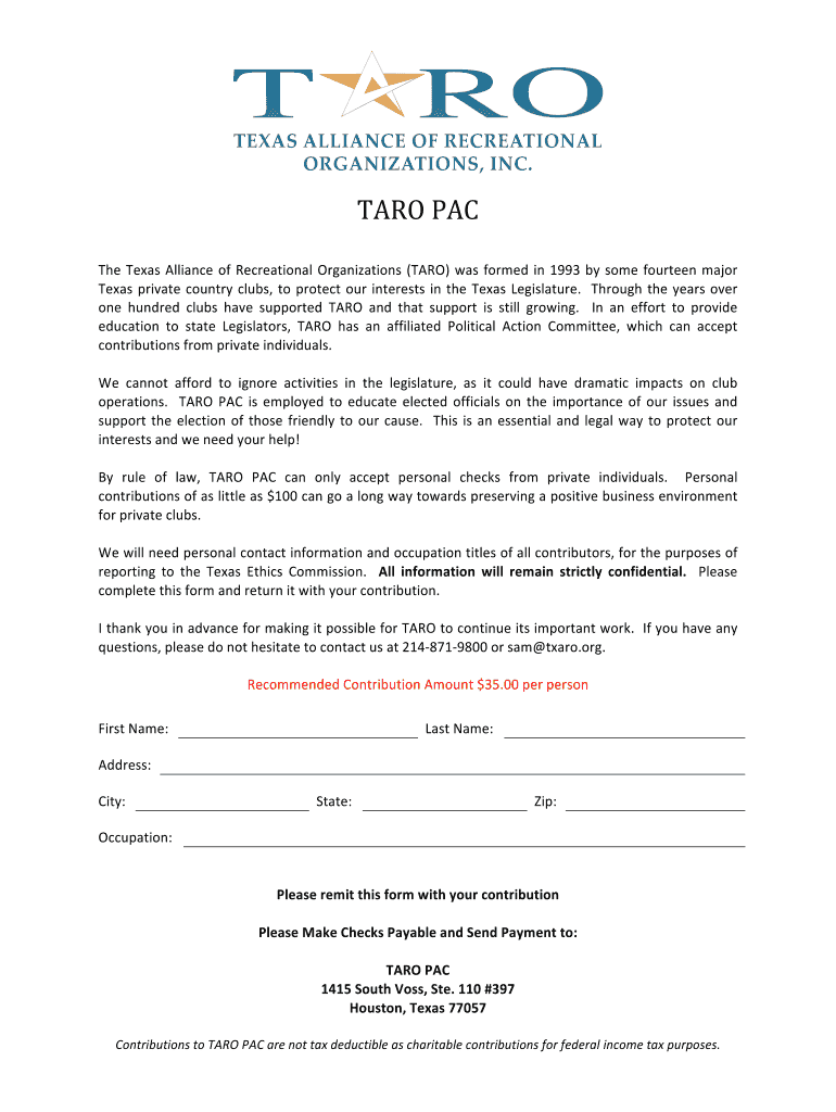 Get the free PAC Contribution Form - txaro.org