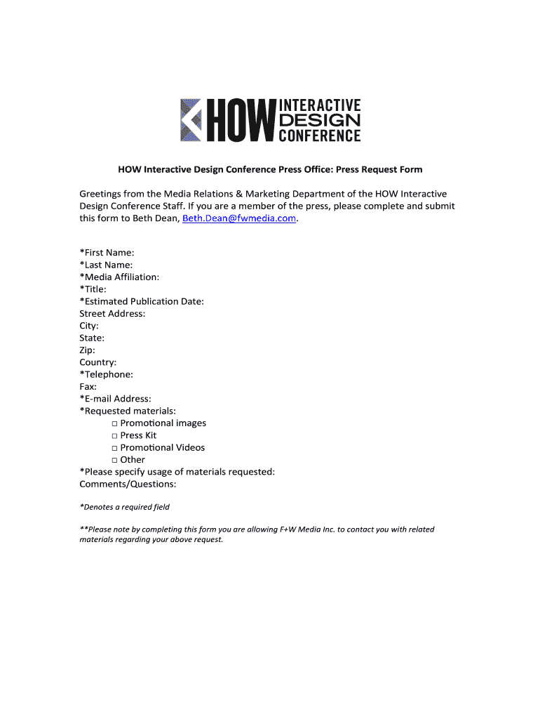 HOW Interactive Design Conference Press Office: Press Request Form Greetings from the Media Relations & Marketing Department of the HOW Interactive Design Conference Staff. If you are a member of
