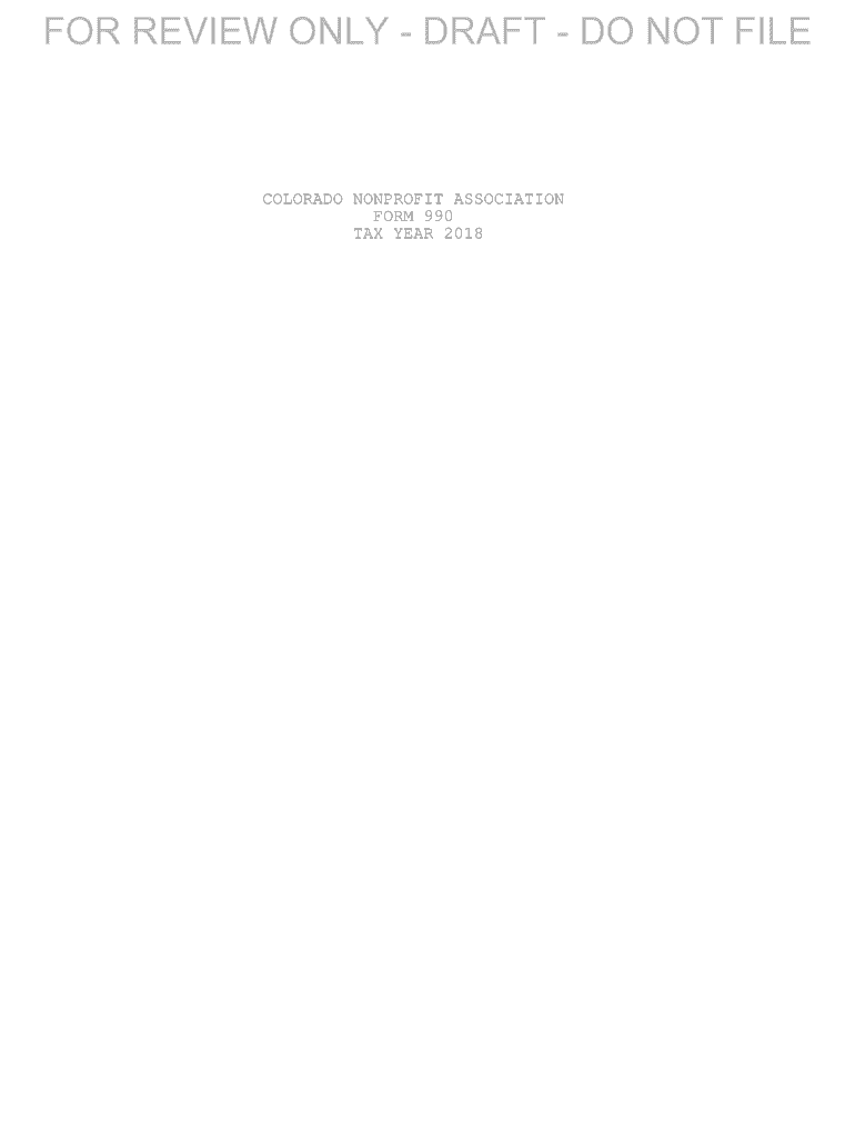 FOR REVIEW ONLY DRAFT DO NOT FILECOLORADO NONPROFIT ASSOCIATION FORM 990 TAX YEAR 2018FOR REVIEW ONLY DRAFT DO NOT FILE Return of Organization Exempt From Income Tax Form OMB No. 15450047990IDepartment