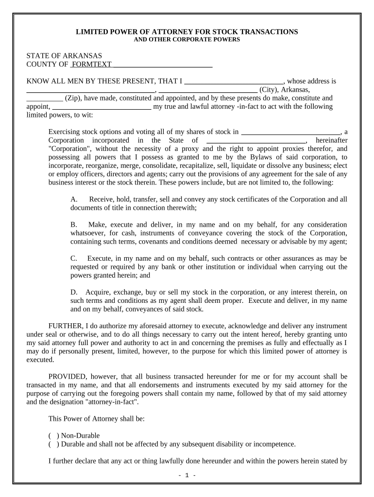 Get the free Limited Power of Attorney for Stock Transactions and Corporate Powers template