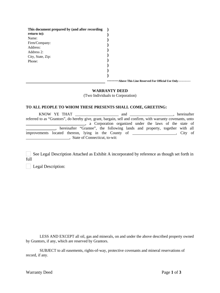 Get the free Warranty Deed from two Individuals to Corporation template