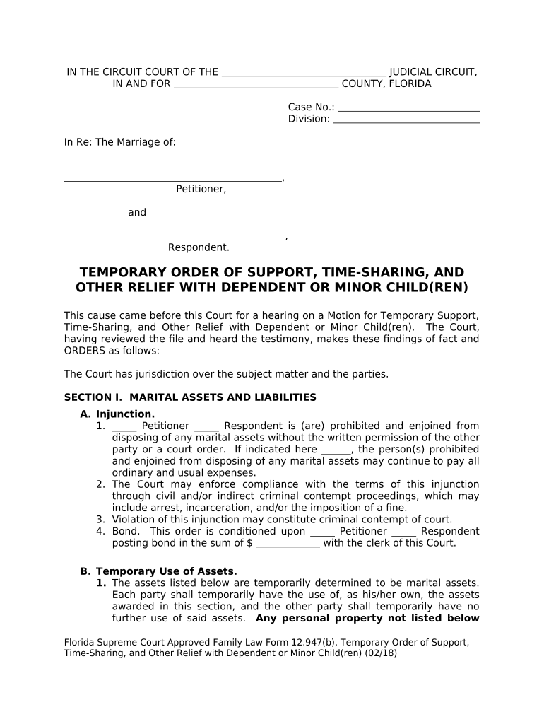 Temporary Order of Support with Dependent or Minor Child(ren) - Official: This is an official form from the Florida Circuit Court, which complies with all applicable laws and statutes. USLF amends