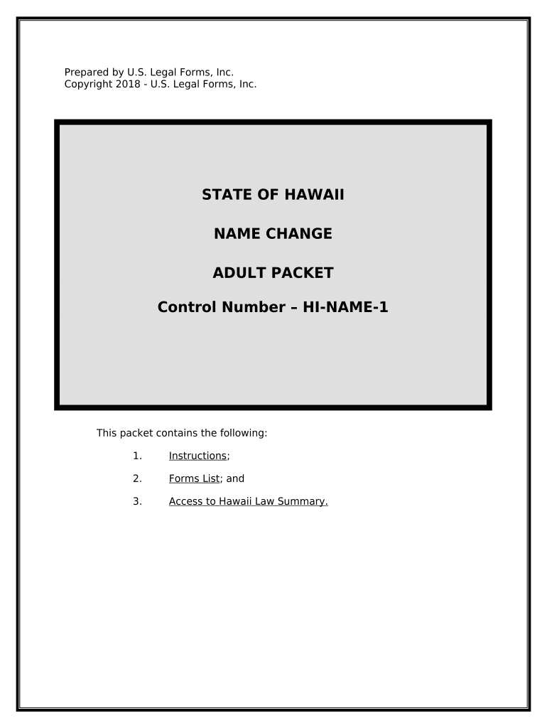 This is a Name Change package for an adult for the Hawaii. This package contains (1) State Specific Information on change of name, (2) Steps to Change your Name, (3) Forms required and (4) Access