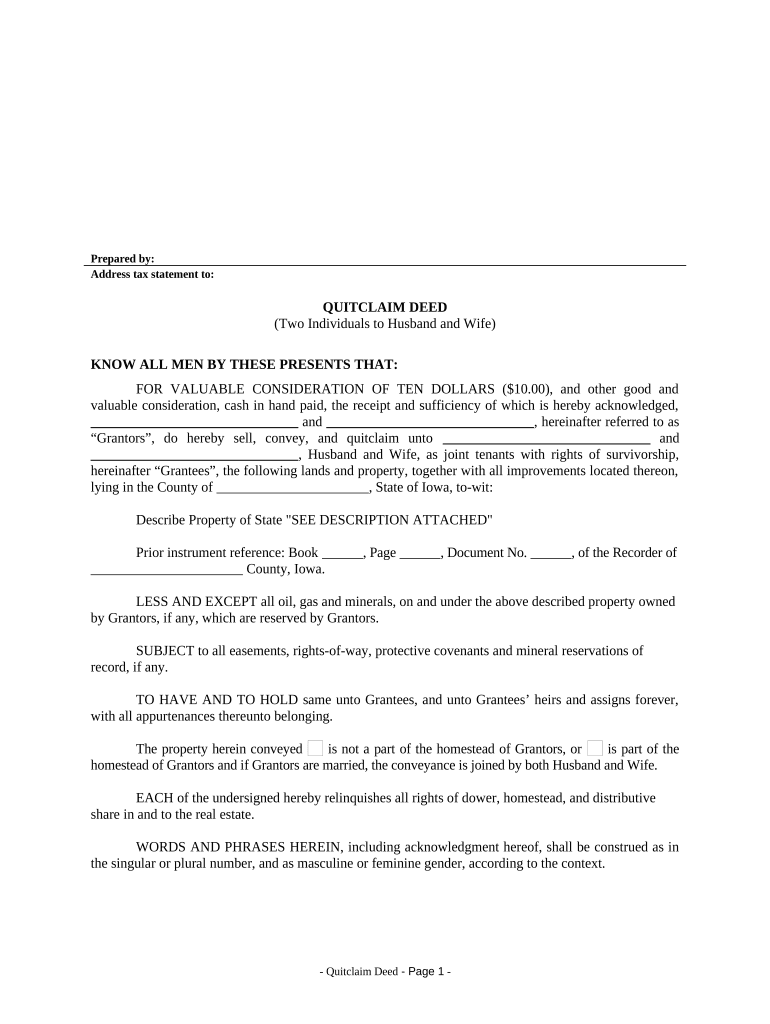 What is Quitclaim Deed by Two Individuals to Husband and Wife Form?