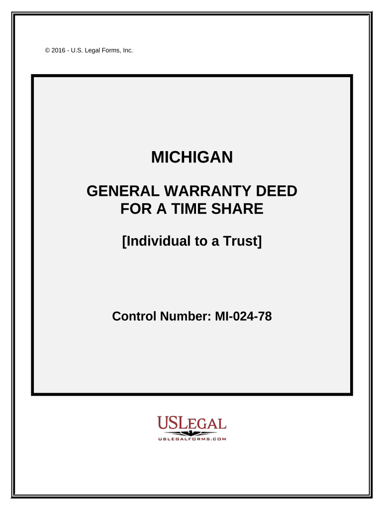This form is a Warranty Deed for a Time Share where the Grantor is an individual and the Grantee is a Trust. Grantor conveys and warrants the described property to the Grantee. This deed complies