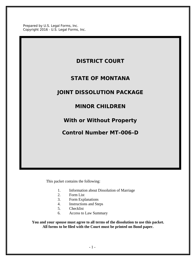 Get the free Montana No-Fault Agreed Uncontested Divorce Package for Joint Dissolution of Marriag...