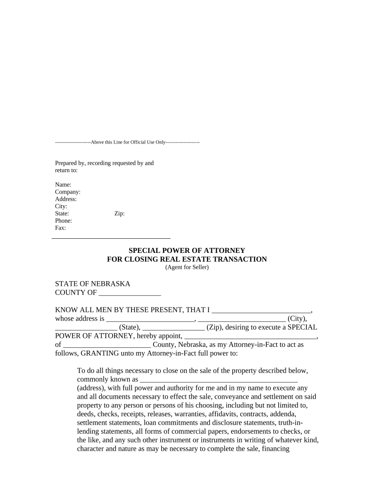 This Special or Limited Power of Attorney for Real Estate Sales Transaction By Seller form is for a Seller to authorize an attorney-in-fact to execute all documents and do all things necessary to