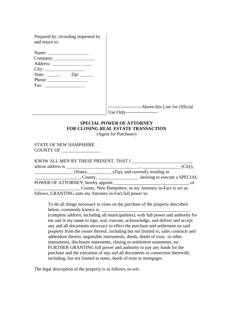 In New Hampshire, the legal framework surrounding powers of attorney is defined by specific statutes, which detail how these documents can be legally enforced. Understanding these laws is essential to ensure that a special power of attorney is valid and enforceable.