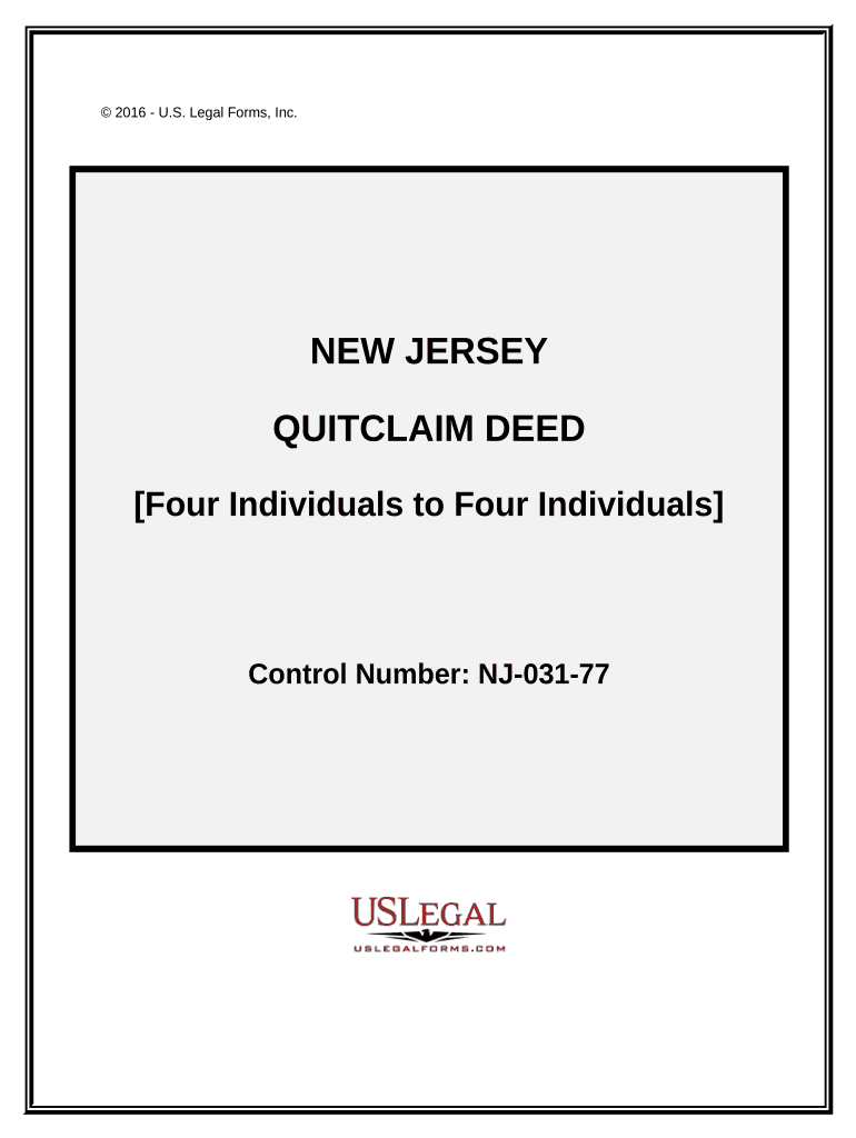 This form is a Quitclaim Deed where the Grantors are four individuals and the Grantees are four individuals. Grantors convey and quitclaim any interest they might have in the described property to