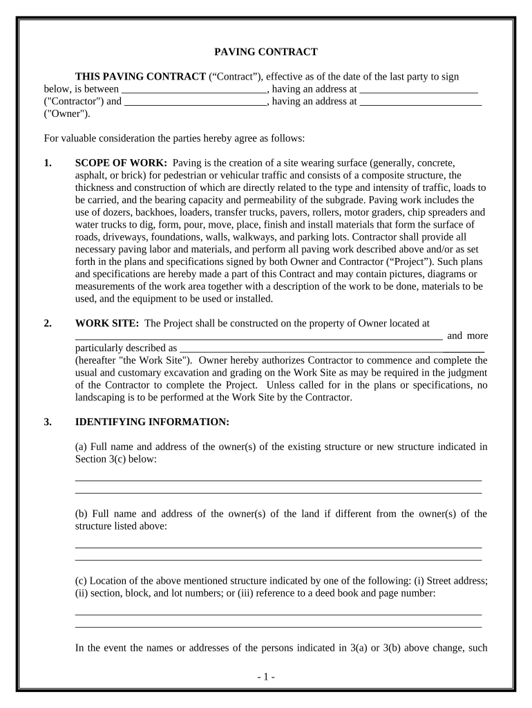 There is no specific deadline for this form; however, it should be filled out before the commencement of any paving work to ensure clarity on terms.