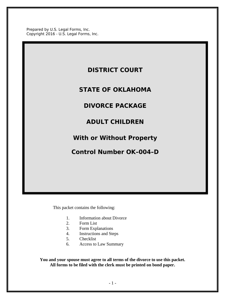Get the free Oklahoma No-Fault Uncontested Agreed Divorce Package for Dissolution of Marriage wit...