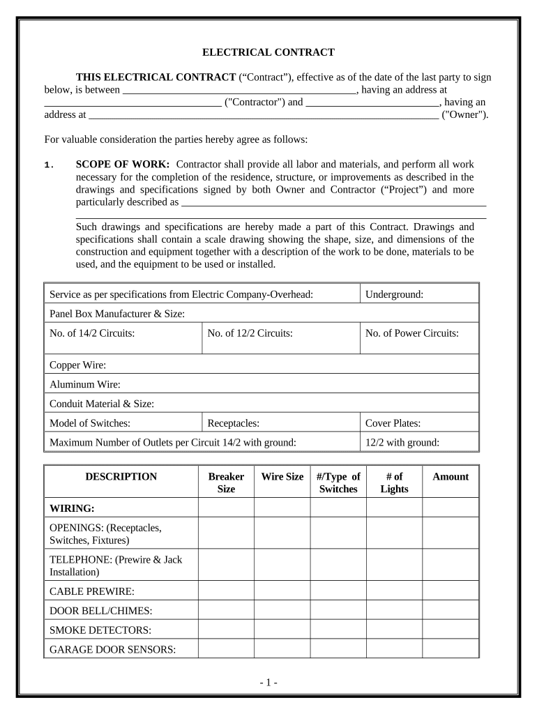 How to fill out the electrical contract for contractor