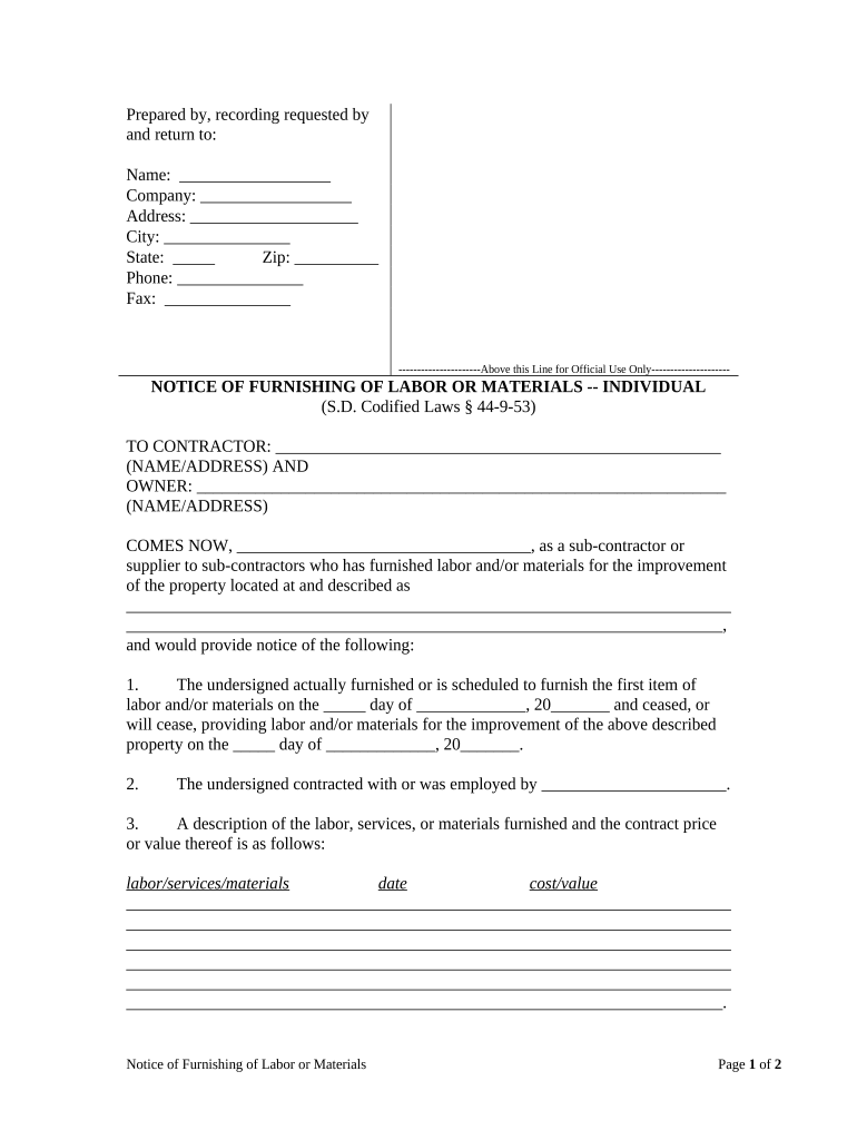 A notice of furnishing is a legal document that provides information about labor or materials supplied to a construction project and serves as formal notice to property owners and others involved.