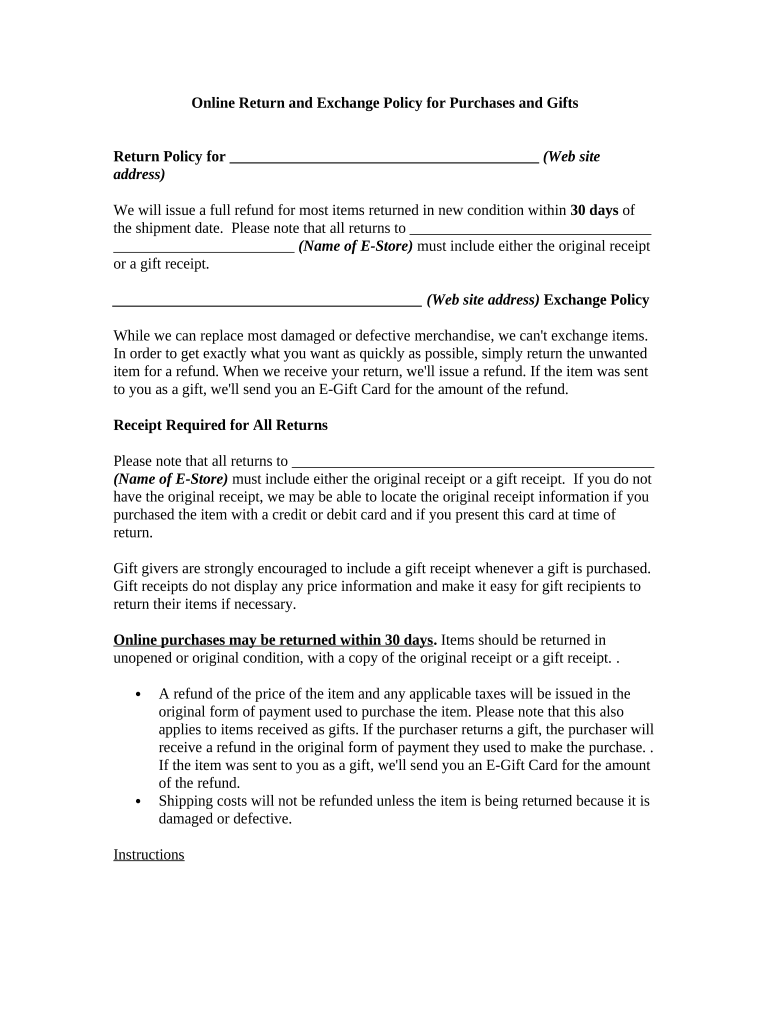 Get the free Online Return and Exchange Policy for Purchases and Gifts template
