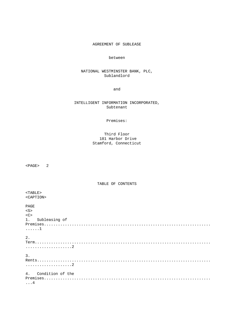 Agreement of Sublease between National Westminster Bank, PLC and Intelligent Information, Incorporated regarding the sublease of premises dated September 9, 1999. 26 pages.