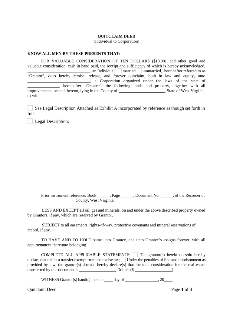 Get the free Quitclaim Deed from Individual to Corporation template