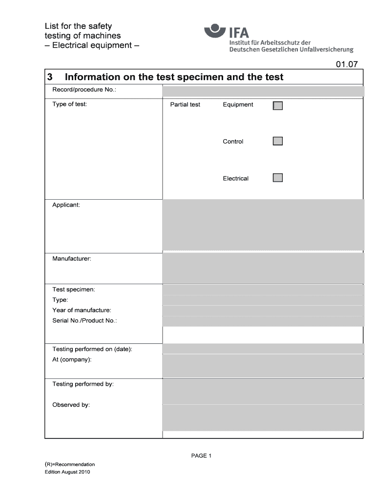 Get the free BListb for the safety testing of bmachinesb - Electrical bequipmentb - DGUV