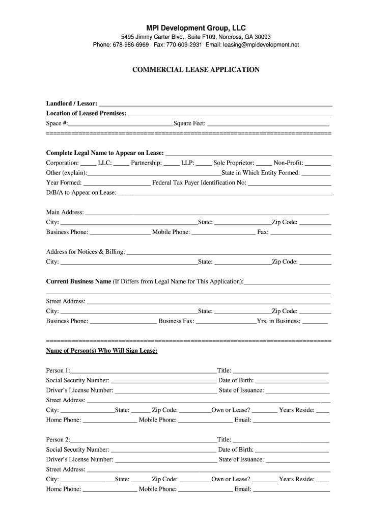 MPI Development Group, LLC 5495 Jimmy Carter Blvd., Suite F109, Norcross, GA 30093 Phone: 6789866969 Fax: 7706092931 Email: leasing development. Noncommercial LEASE APPLICATIONLandlord / Lessor: Location