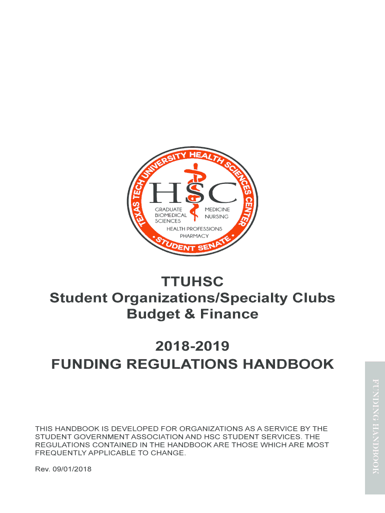 TTU HSC Student Organizations/Specialty Clubs Budget & Finance 20182019 FUNDING REGULATIONS HANDBOOK Rev. 09/01/2018funding handbooks HANDBOOK IS DEVELOPED FOR ORGANIZATIONS AS A SERVICE BY THE STUDENT